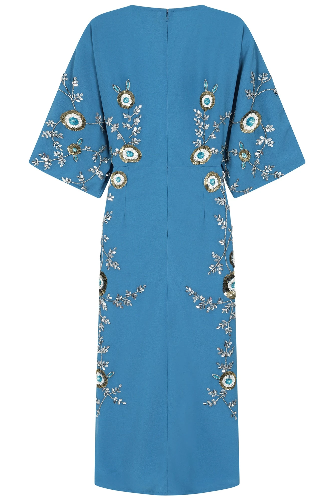 Alyssa Blue Floral Embellished Midi Dress