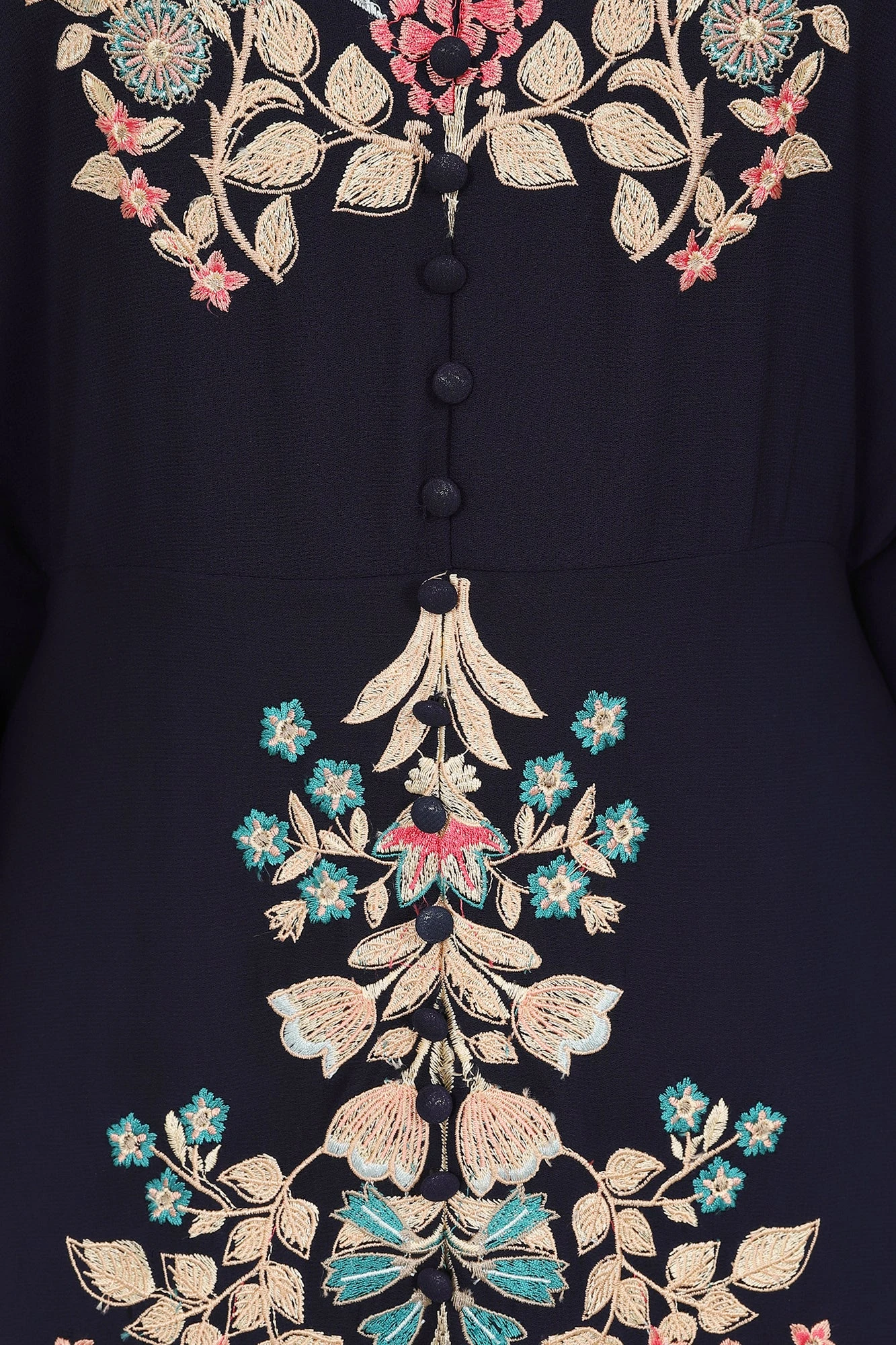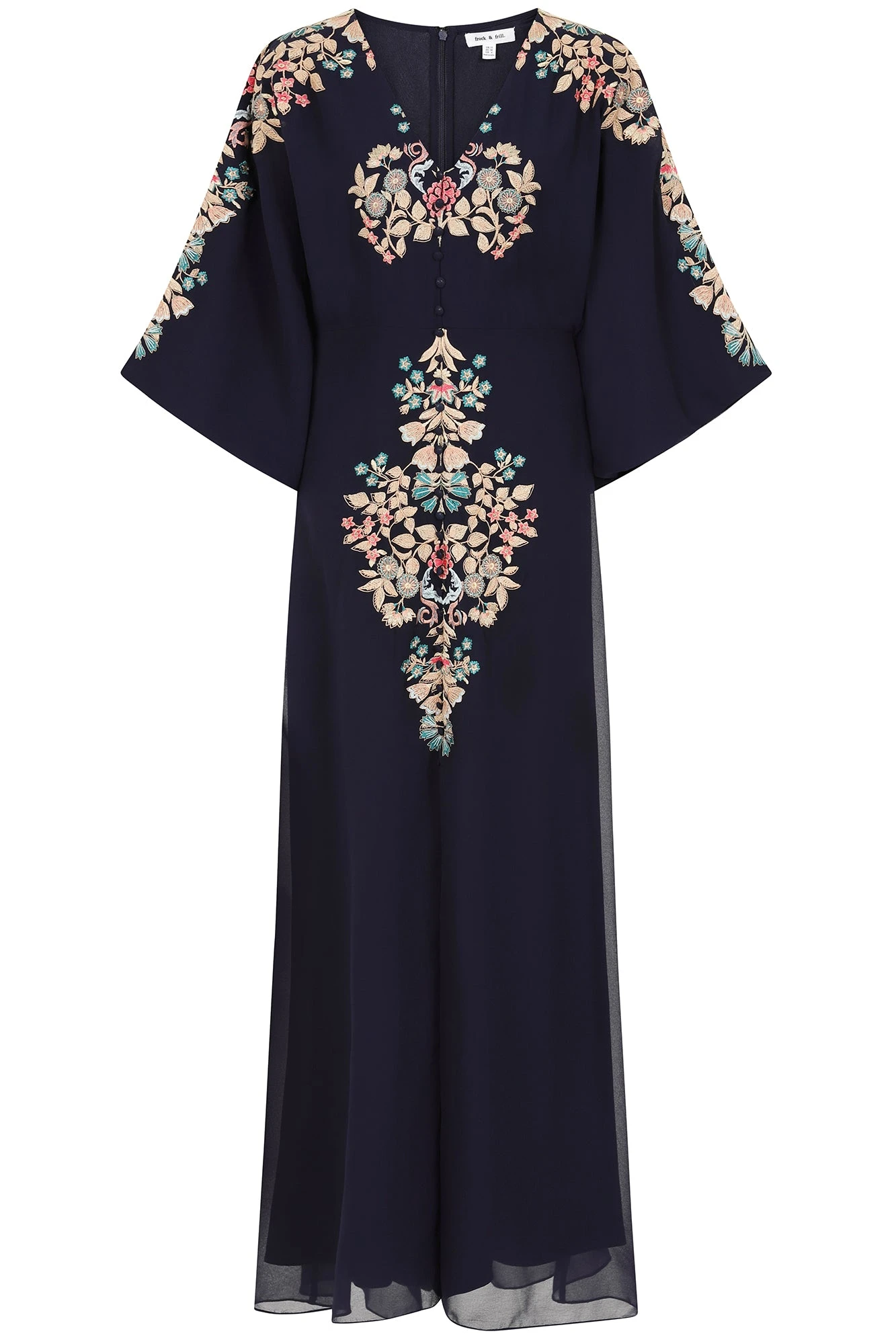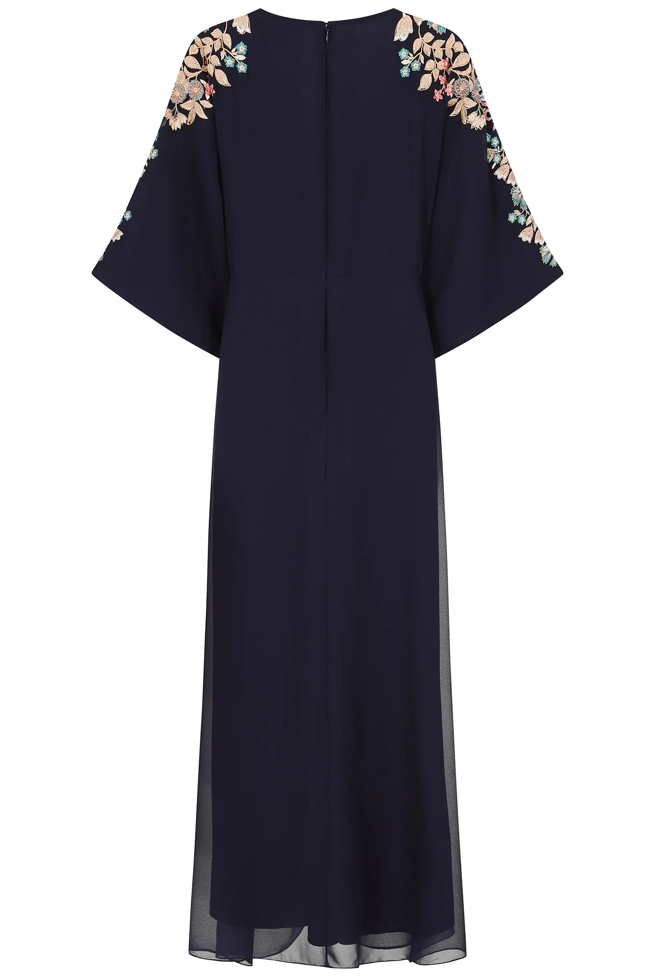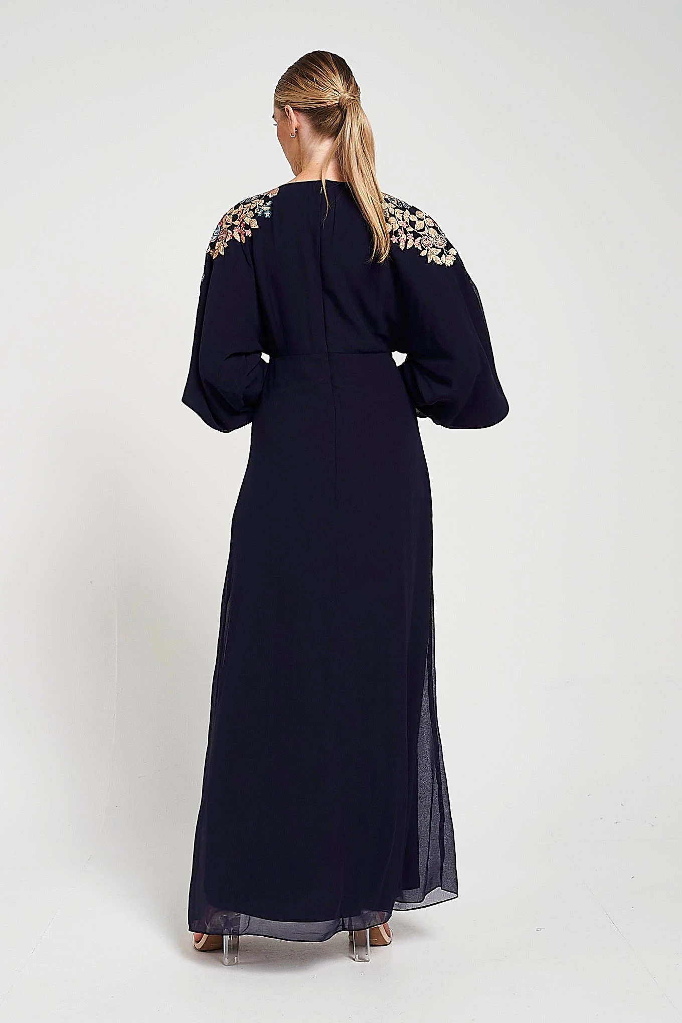 Briony Navy Embroidered Maxi Dress With Batwing Sleeves