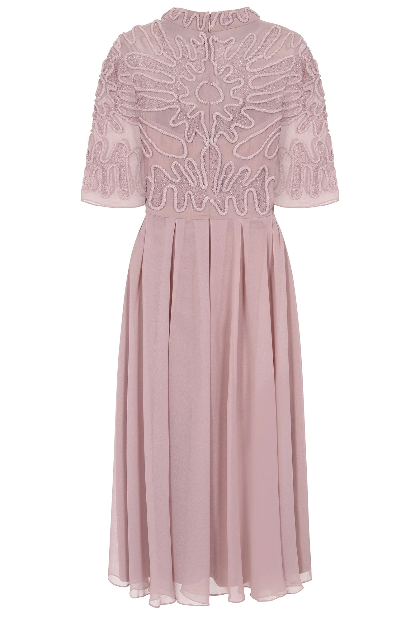 Now available in a dusky mauve hue, the fit and flair Cari is the perfect choice for special spring days. Boasting a bodice embroidered with swirls of tonal cornelli embroidery and a scattering of shimmering sequins, Cari is complete with flared sleeves and a twirl-worthy mid length skirt.