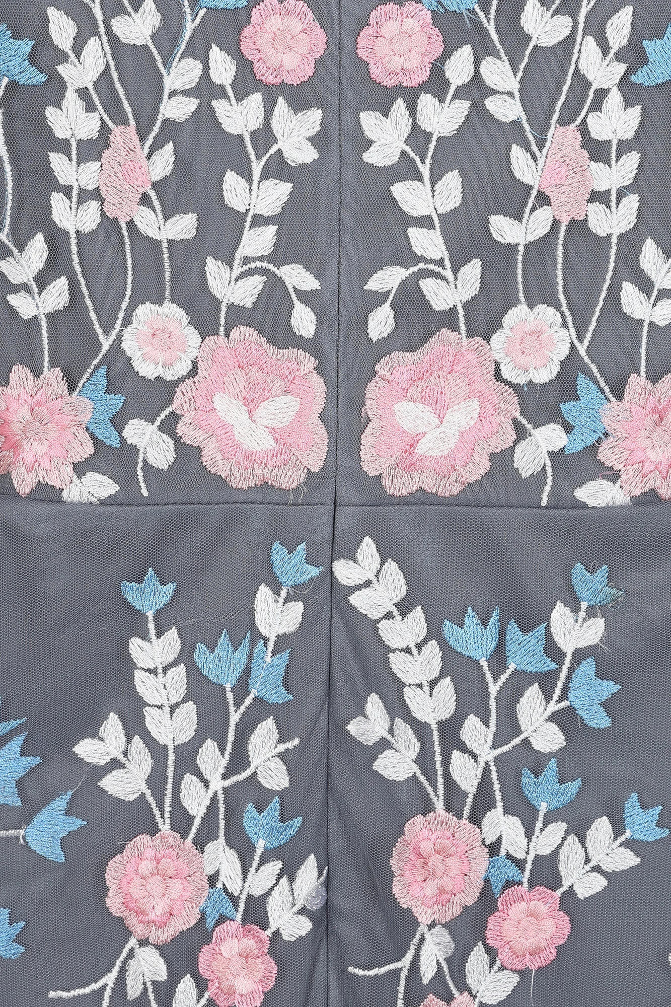 Crisanta Charcoal Floral Embroidered Maxi Dress