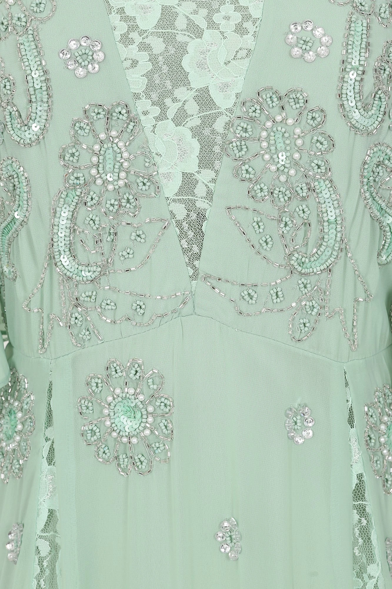 Be the first to review “Fern Light Green Embellished Maxi Dress With Lace Panels” Cancel reply