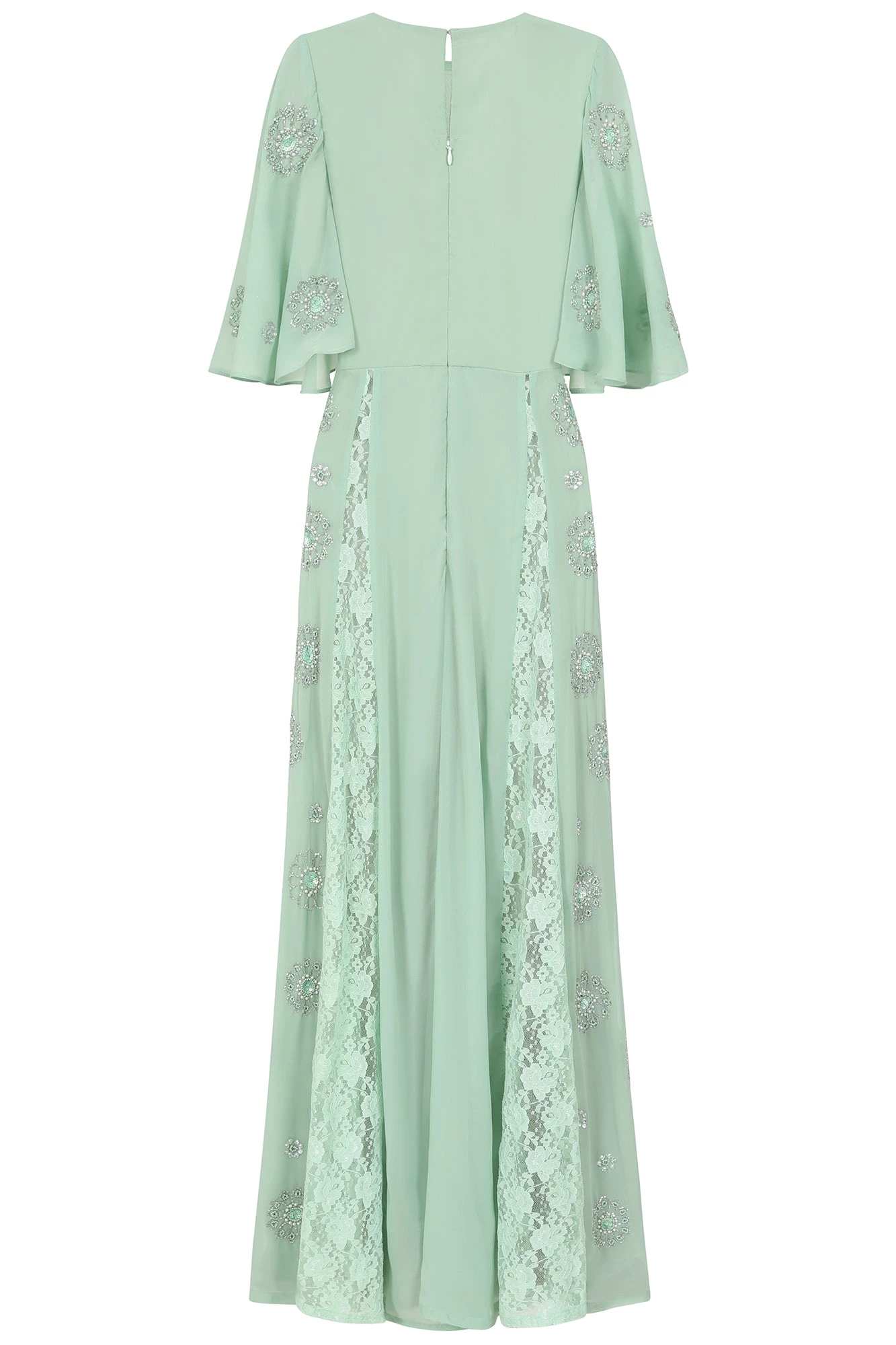 Fern Light Green Embellished Maxi Dress With Lace Panels