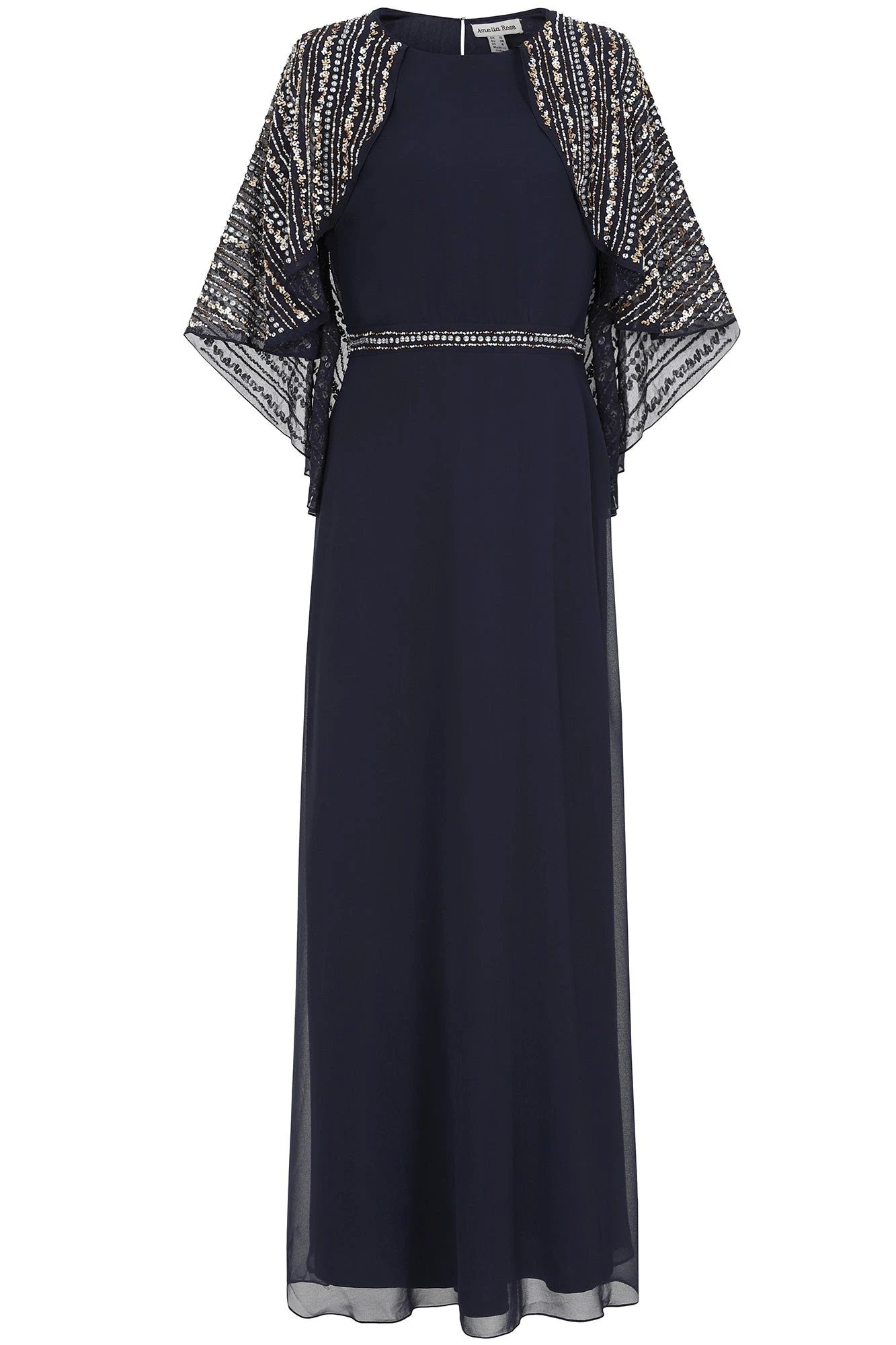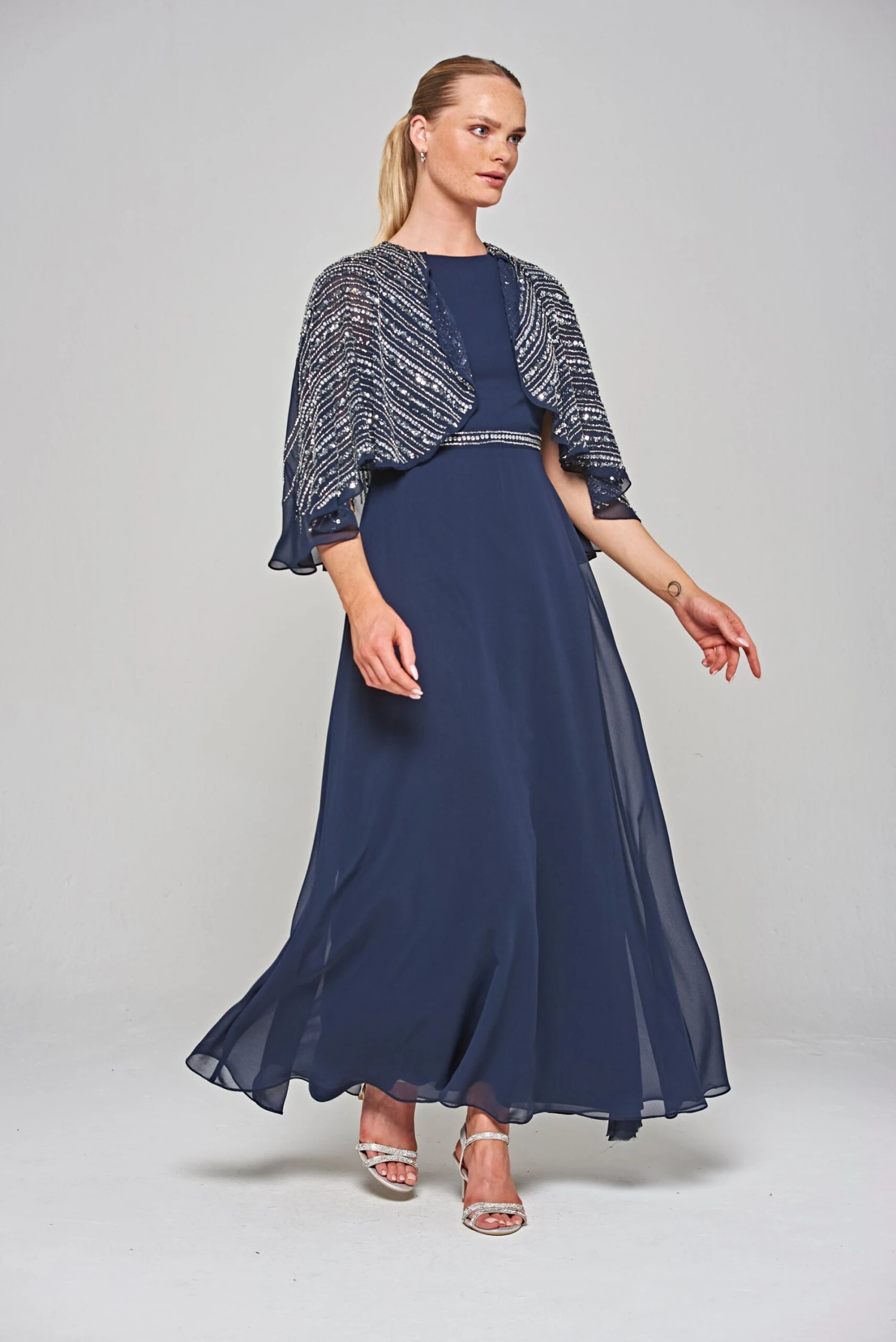 Jacqueline Navy Embellished Cape Sleeve Maxi Dress