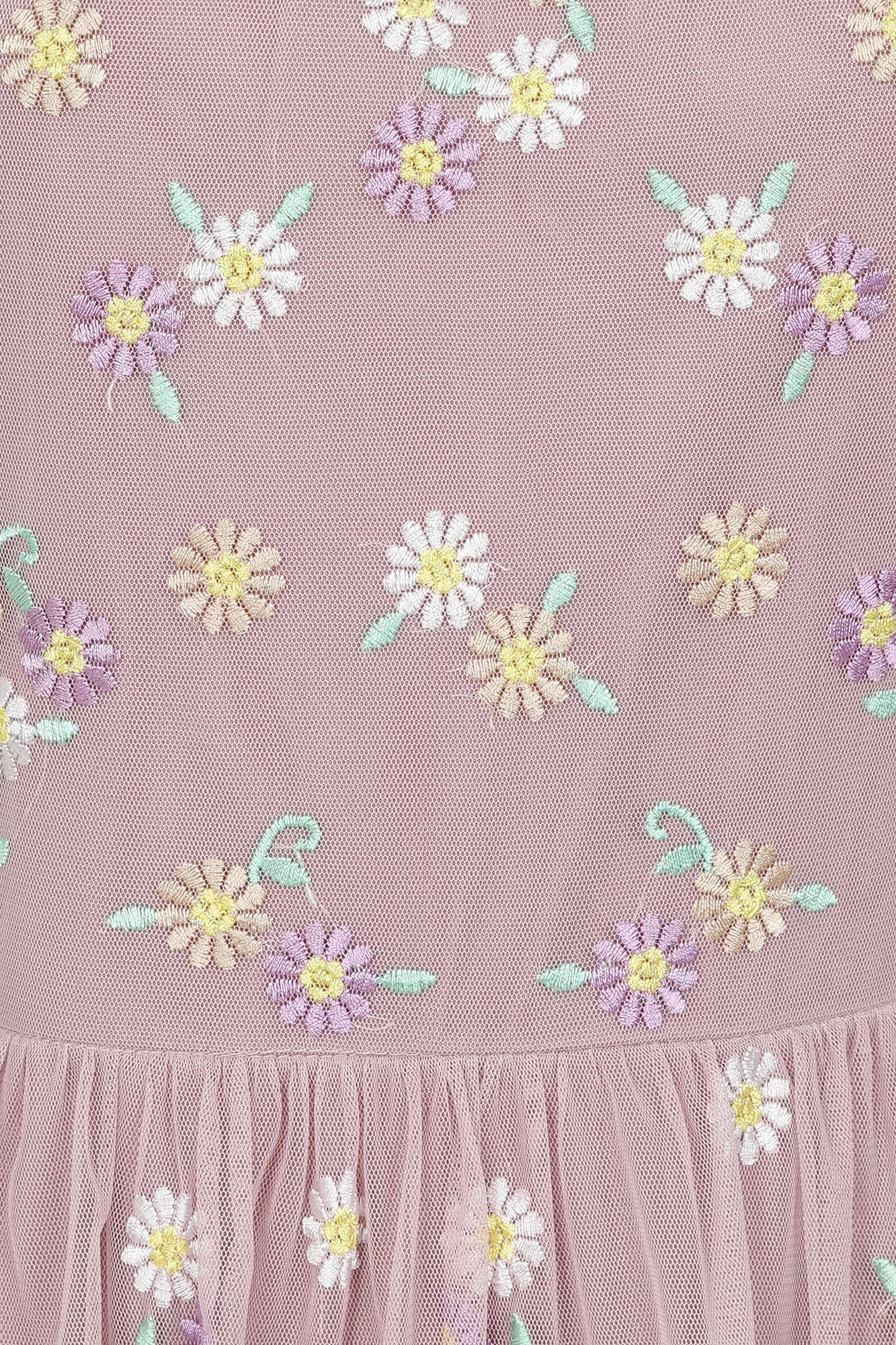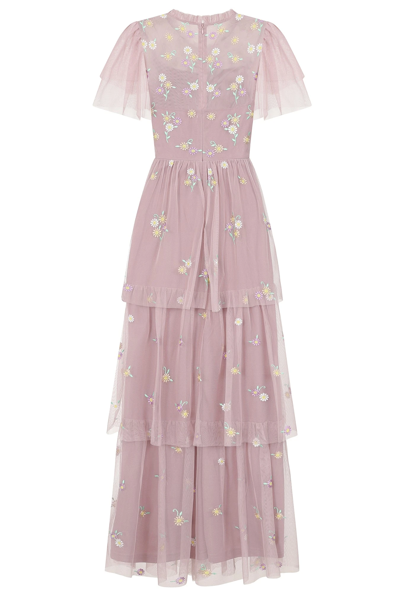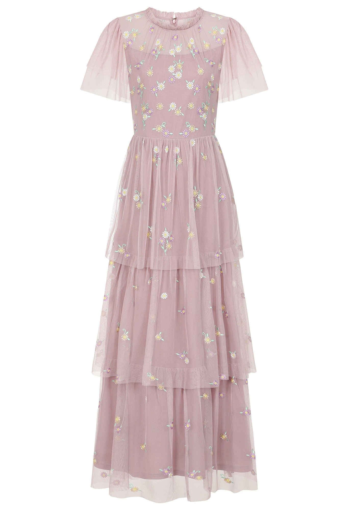 Twirl your way through spring with the Jemima maxi dress in blush. Boasting a full length skirt, tiered with layers of semi-sheer mesh, Jemima is populated with pretty daisy embroidery. This maxi dress is complete with a gathered neckline and layered flutter sleeves.