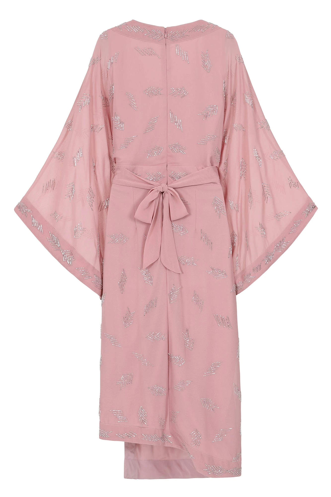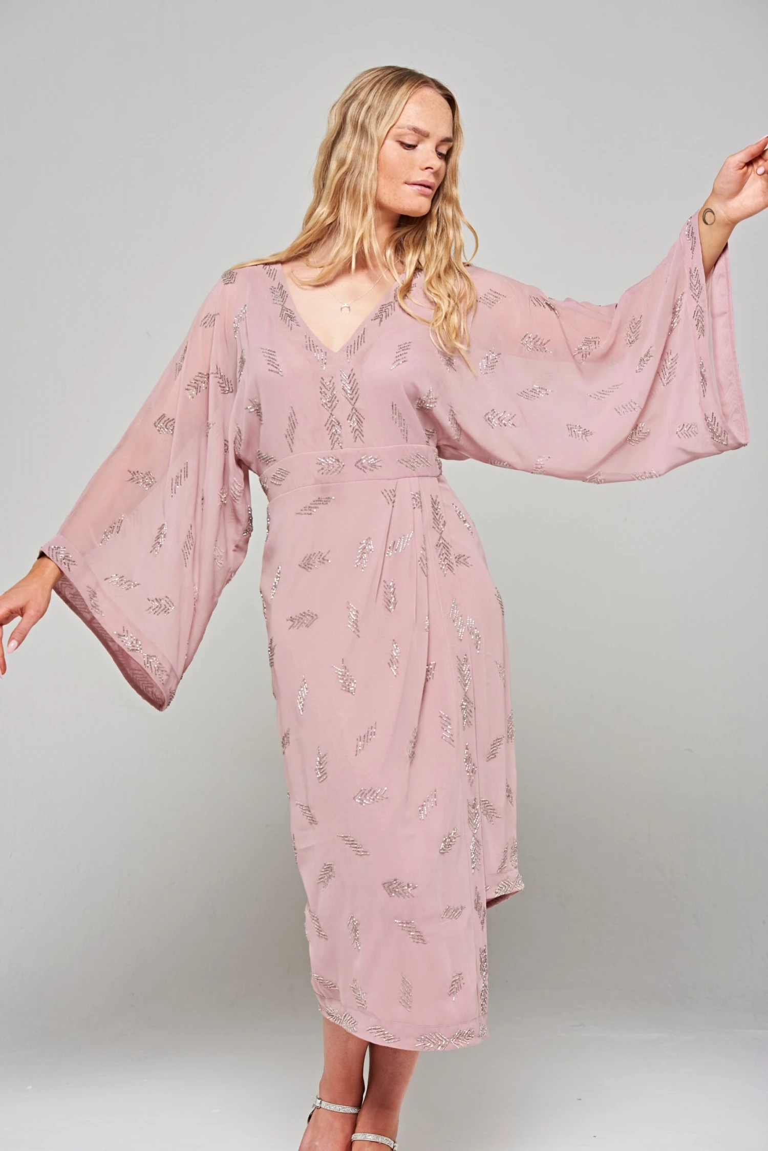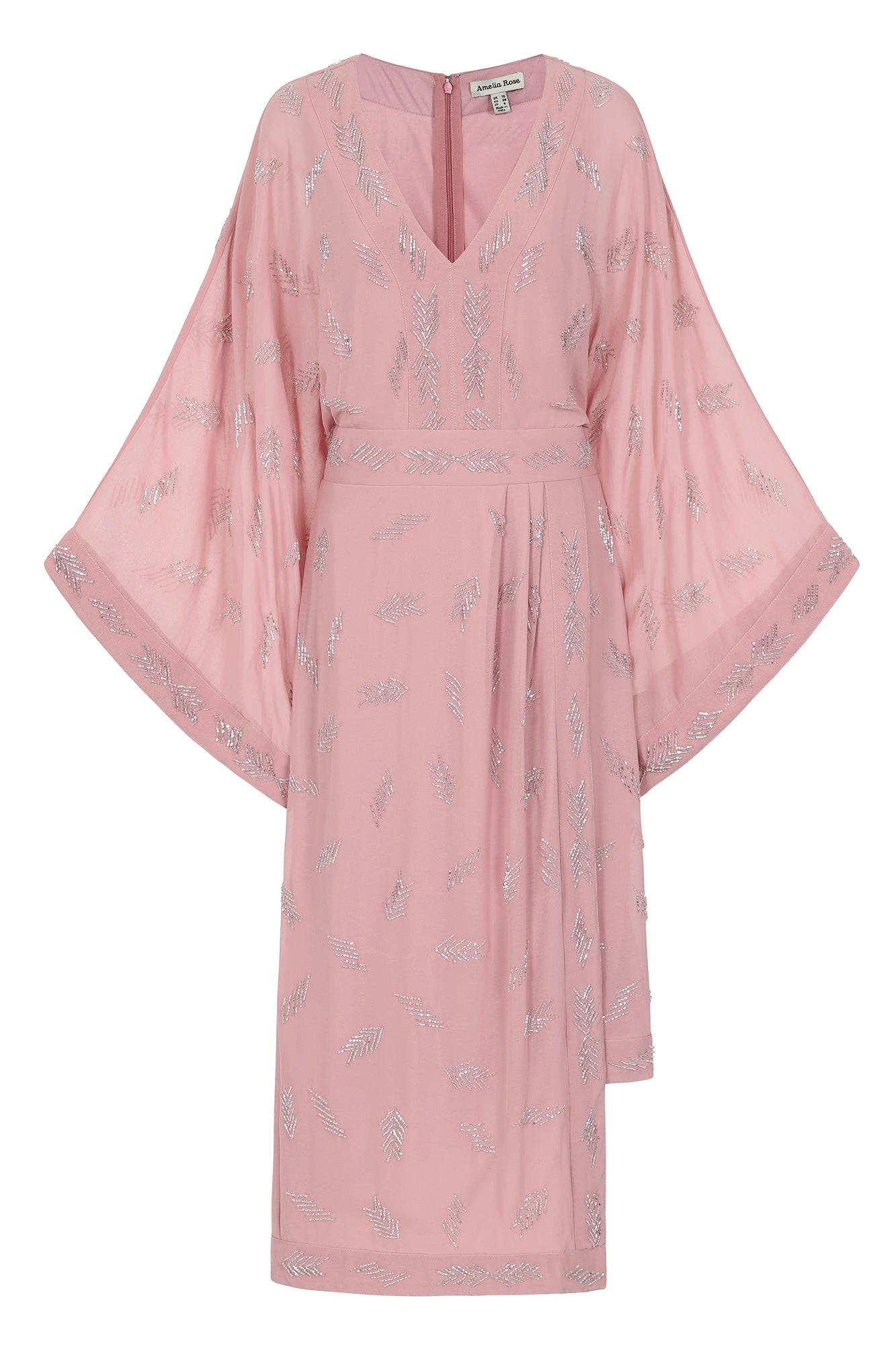 Julia Blush Embellished Midaxi Dress With Oversized Sleeves