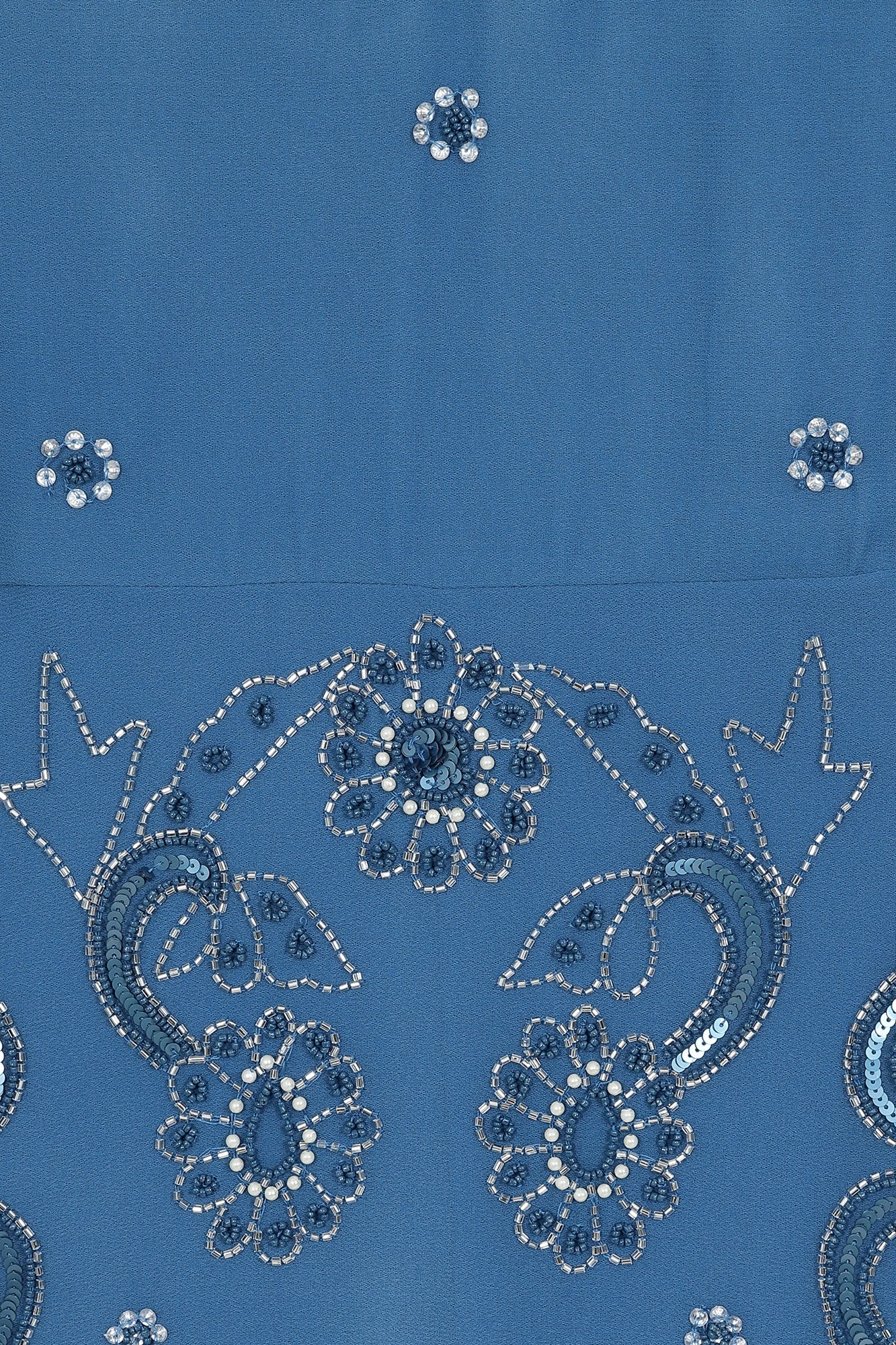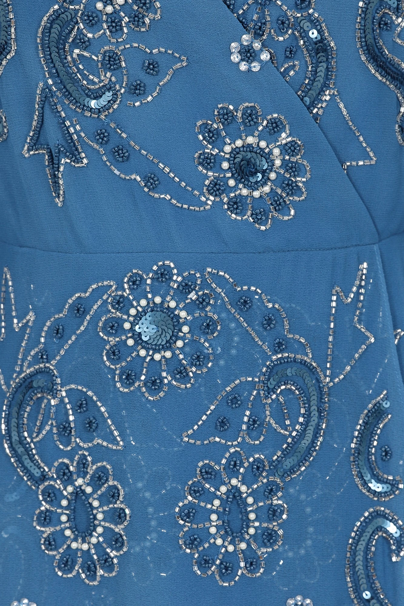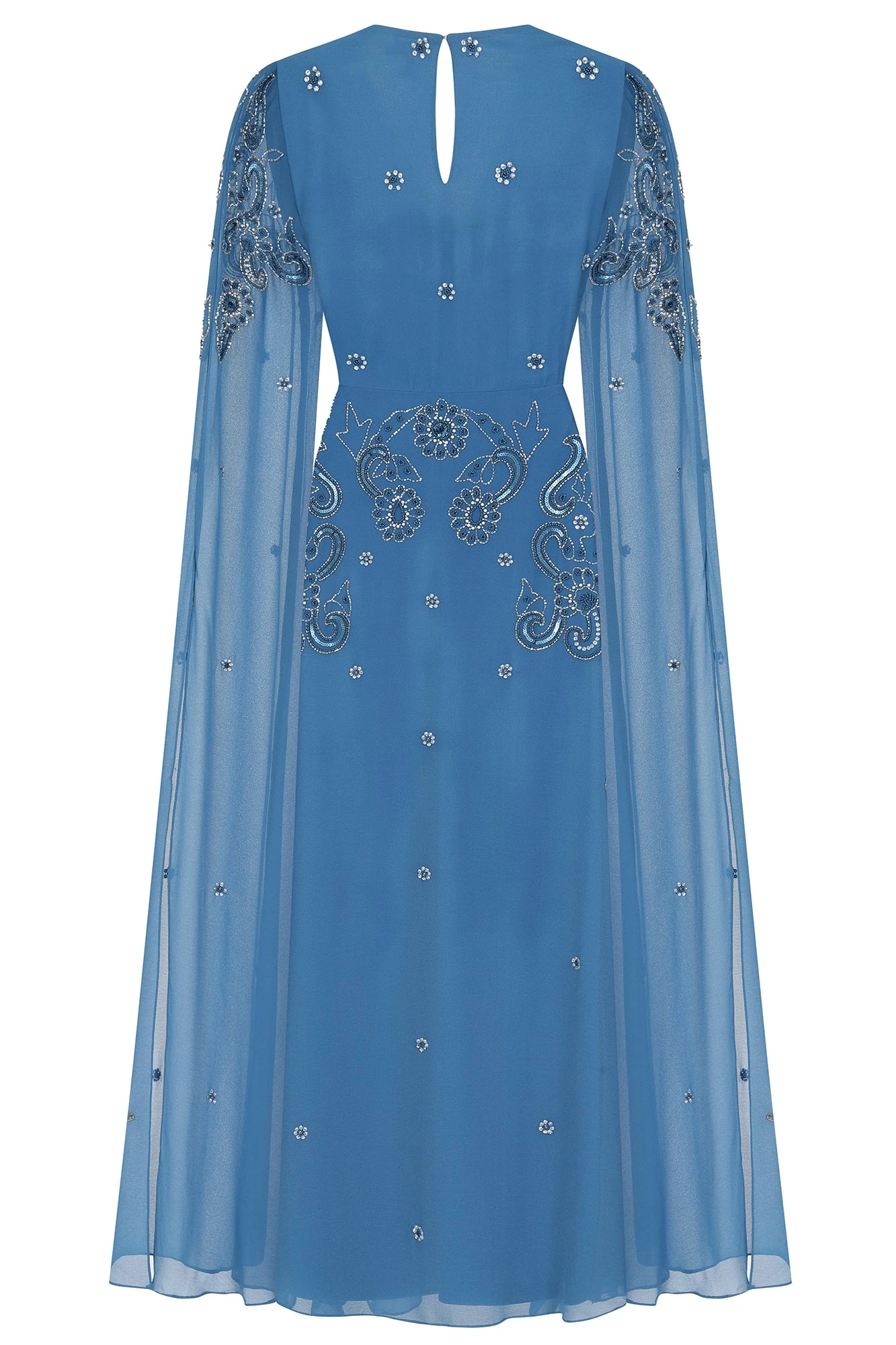 Laelia Blue Flower Embellished Maxi Dress With Cape Sleeves