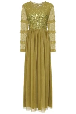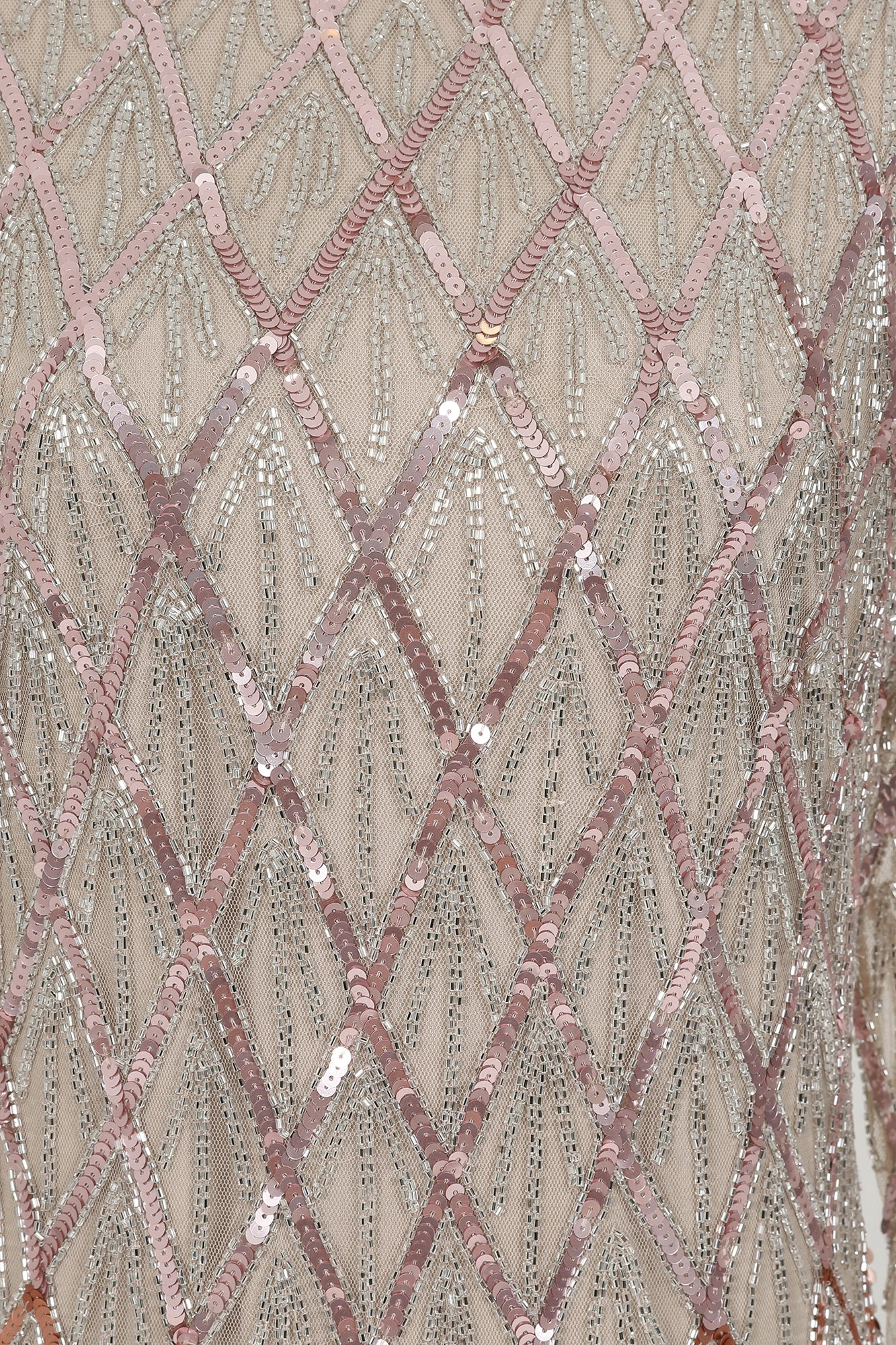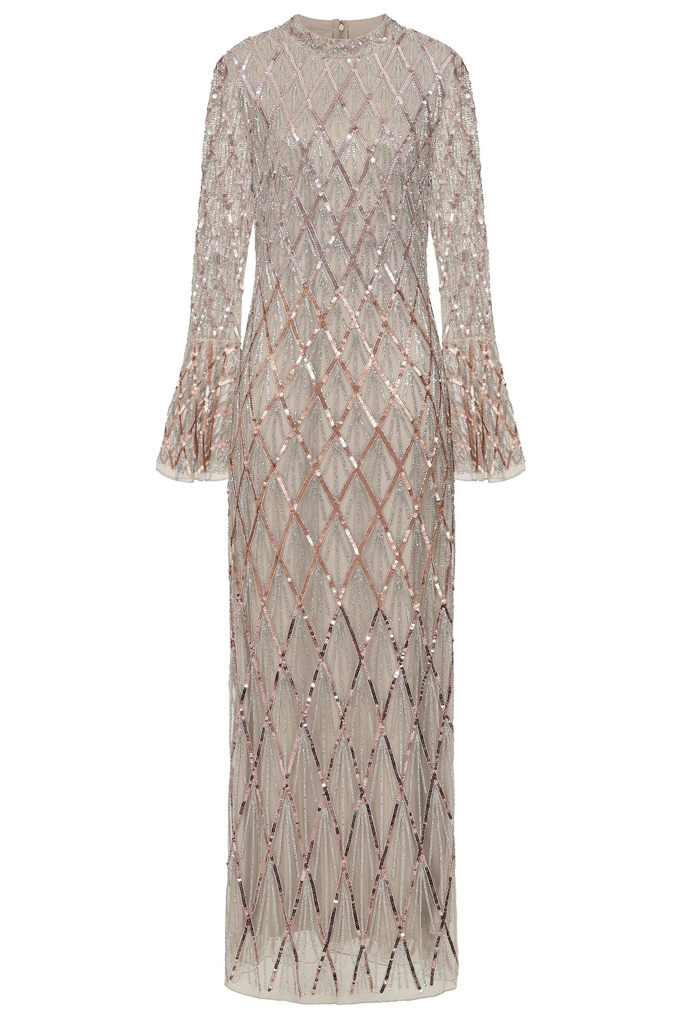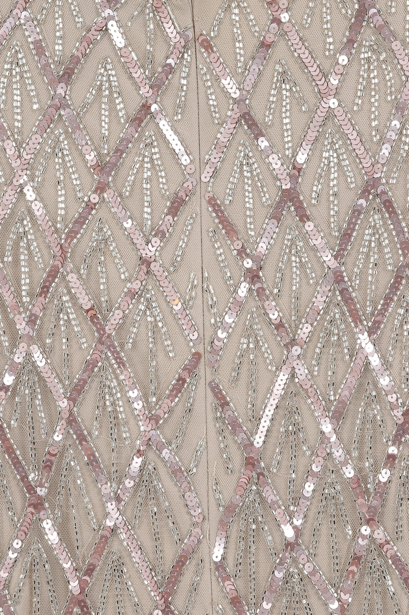 Shimmering with all over sequin embellishment, arranged in a graphic motif and realised in an ombre design that flows from a lilac-tinged silver to a deep copper, the neutral hued Lillian is all about effortless glamour. Cut in a modest silhouette, this floor skimming maxi is complete with a high neckline and gently flaring sleeves. Pick out your favourite metallic shade and style Lillian with minimal jewellery and barely there heels.