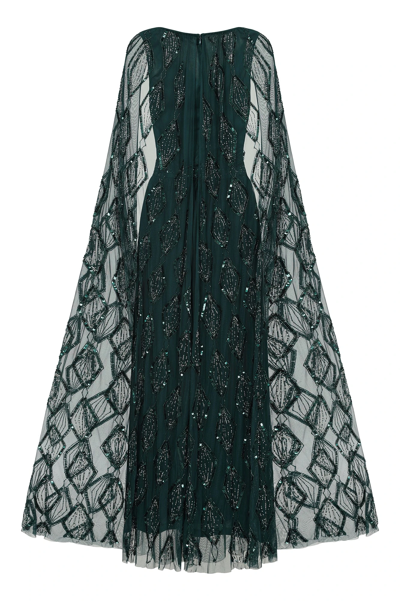 Mae Teal Green Embellished Cape Sleeve Maxi Dress