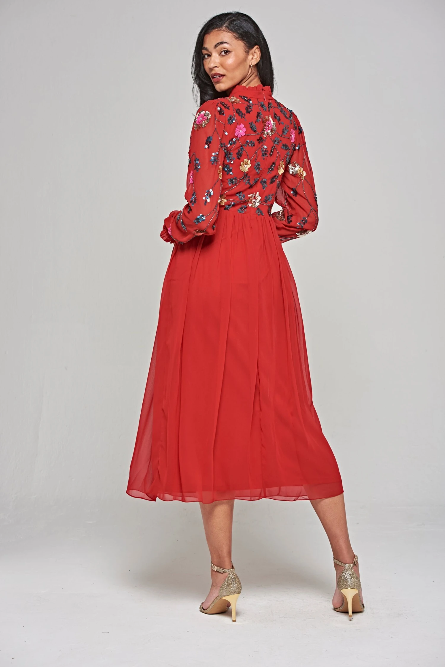 Be the first to review “Marette Red Floral Embellished Midi Dress” Cancel reply