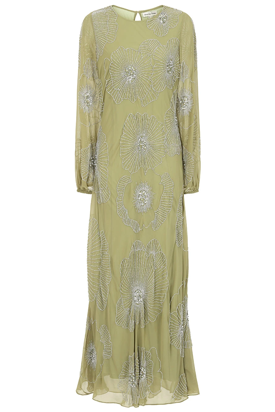 Phoebe Green Floral Embellished Maxi Dress