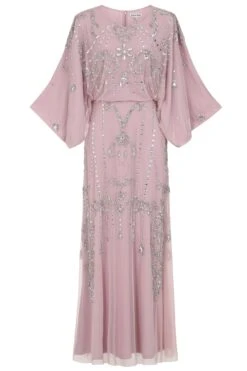 Christine Light Grey Embellished Maxi Dress With Batwing Sleeves