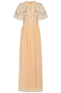 Christine Light Grey Embellished Maxi Dress With Batwing Sleeves