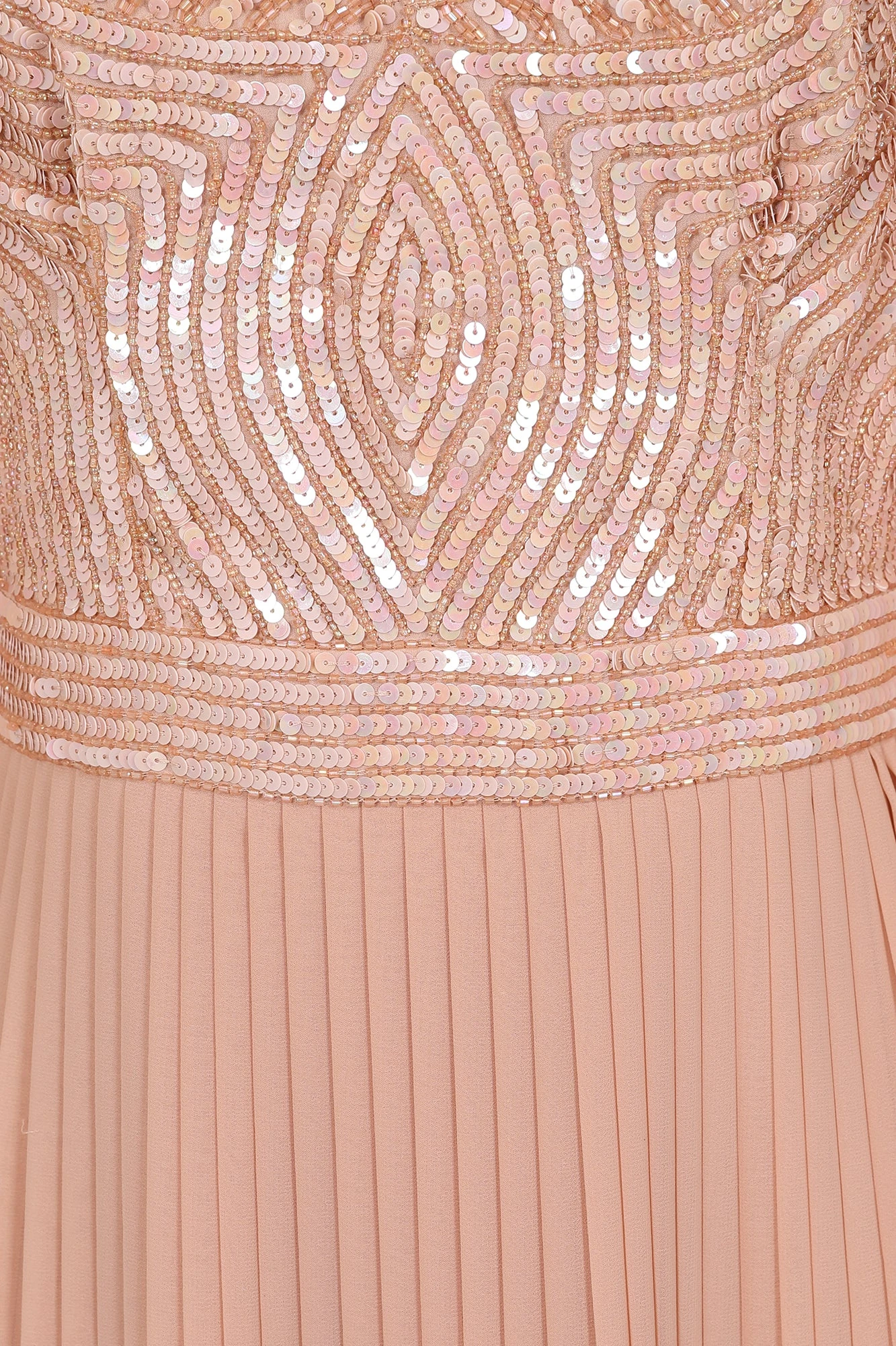 Rosa Blush Sequin Maxi Dress With Pleated Skirt