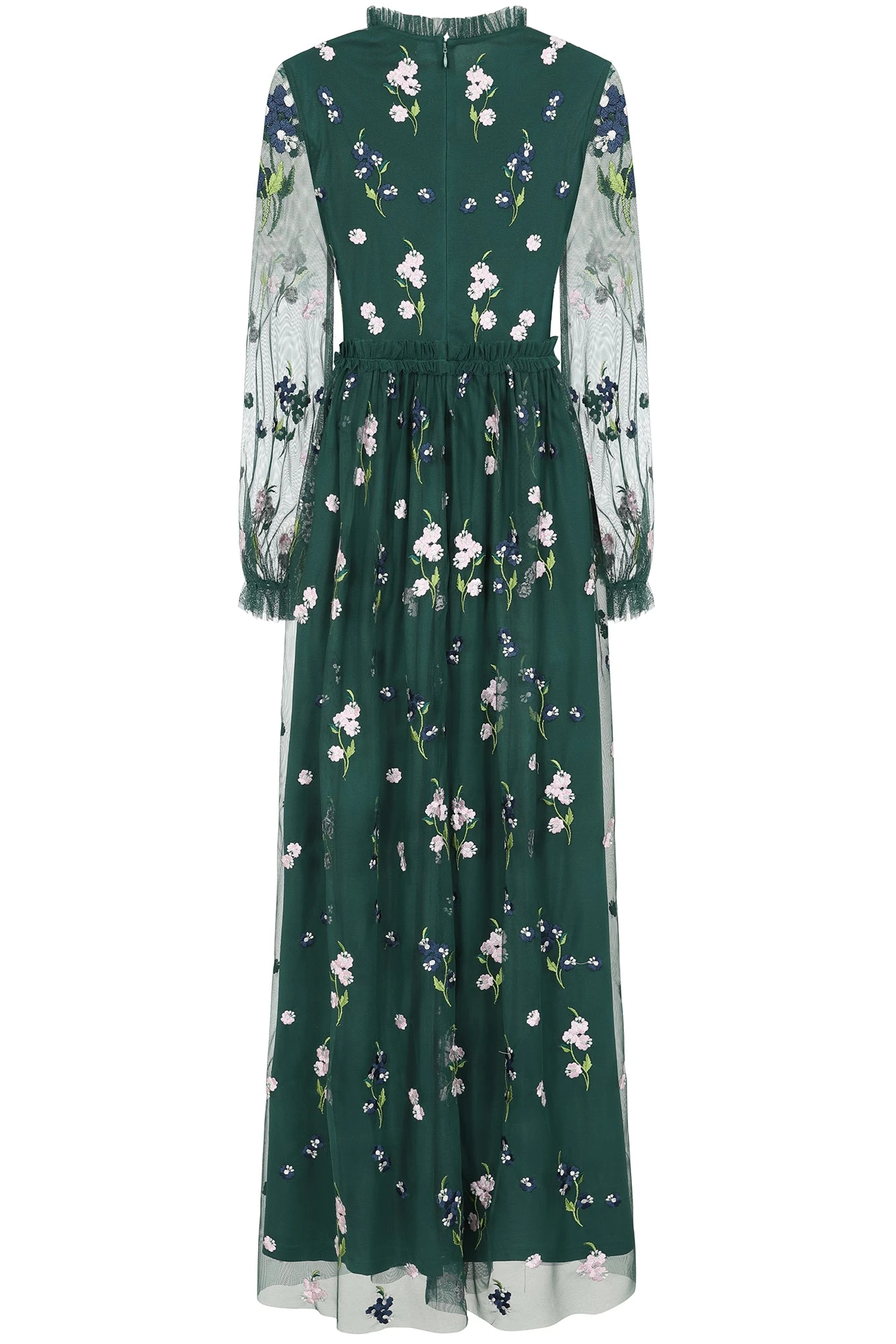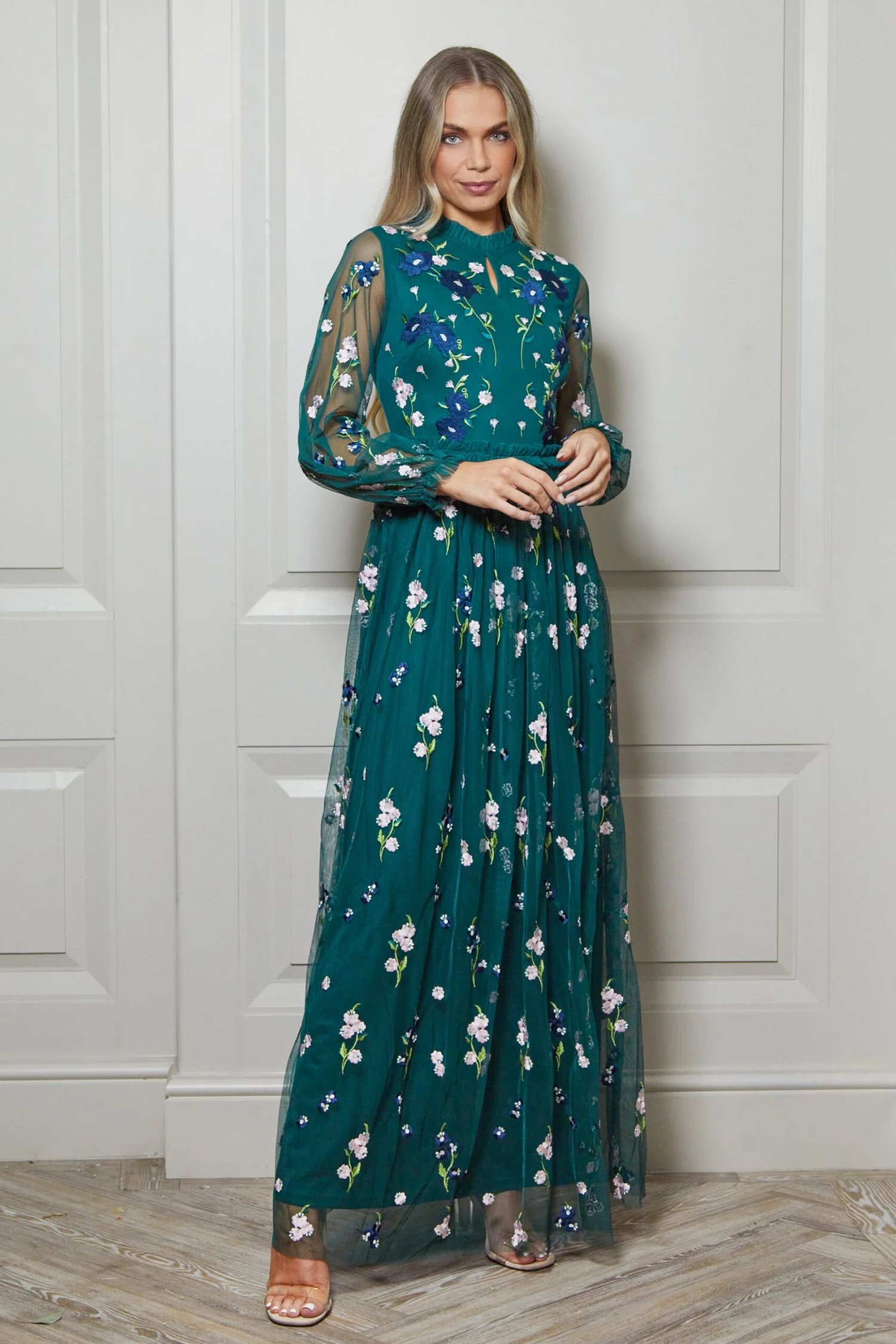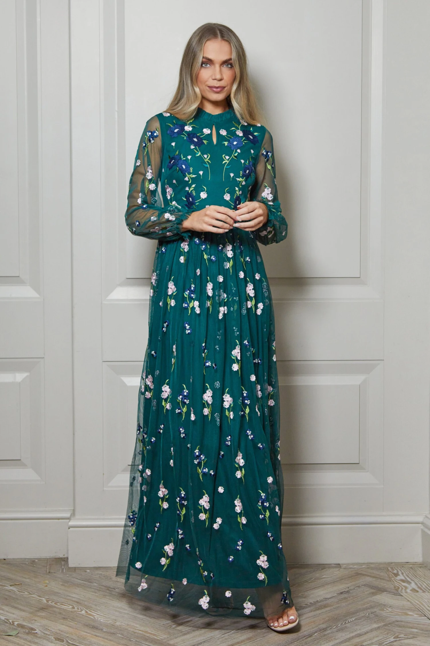 Rydia Alpine Green Floral Embroidered Maxi Dress