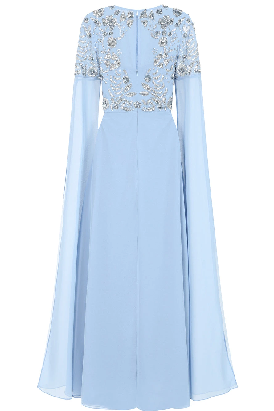Vera Blue Embellished Cape Sleeve Maxi Dress