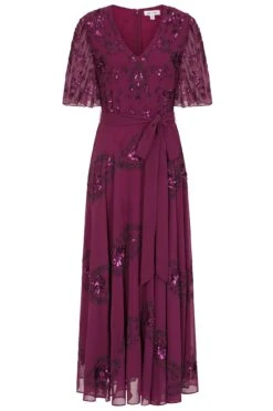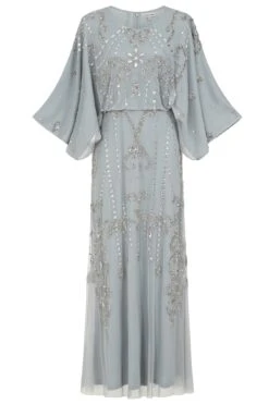Christine Light Grey Embellished Maxi Dress With Batwing Sleeves
