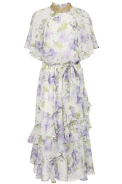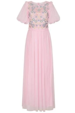 Laraline Blush Puff Sleeve Maxi Dress With Floral Embroidery
