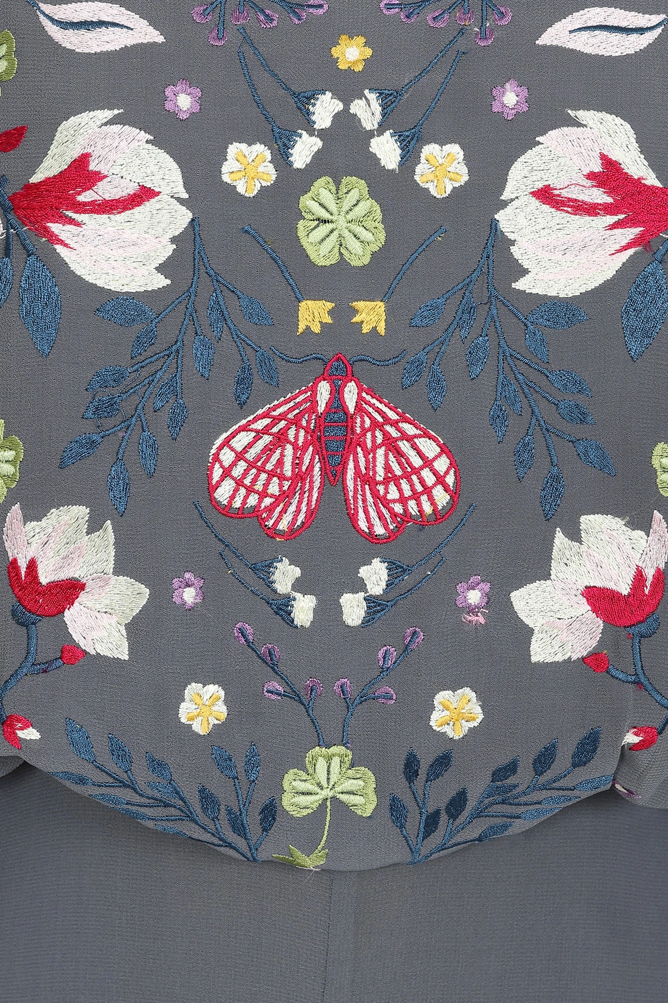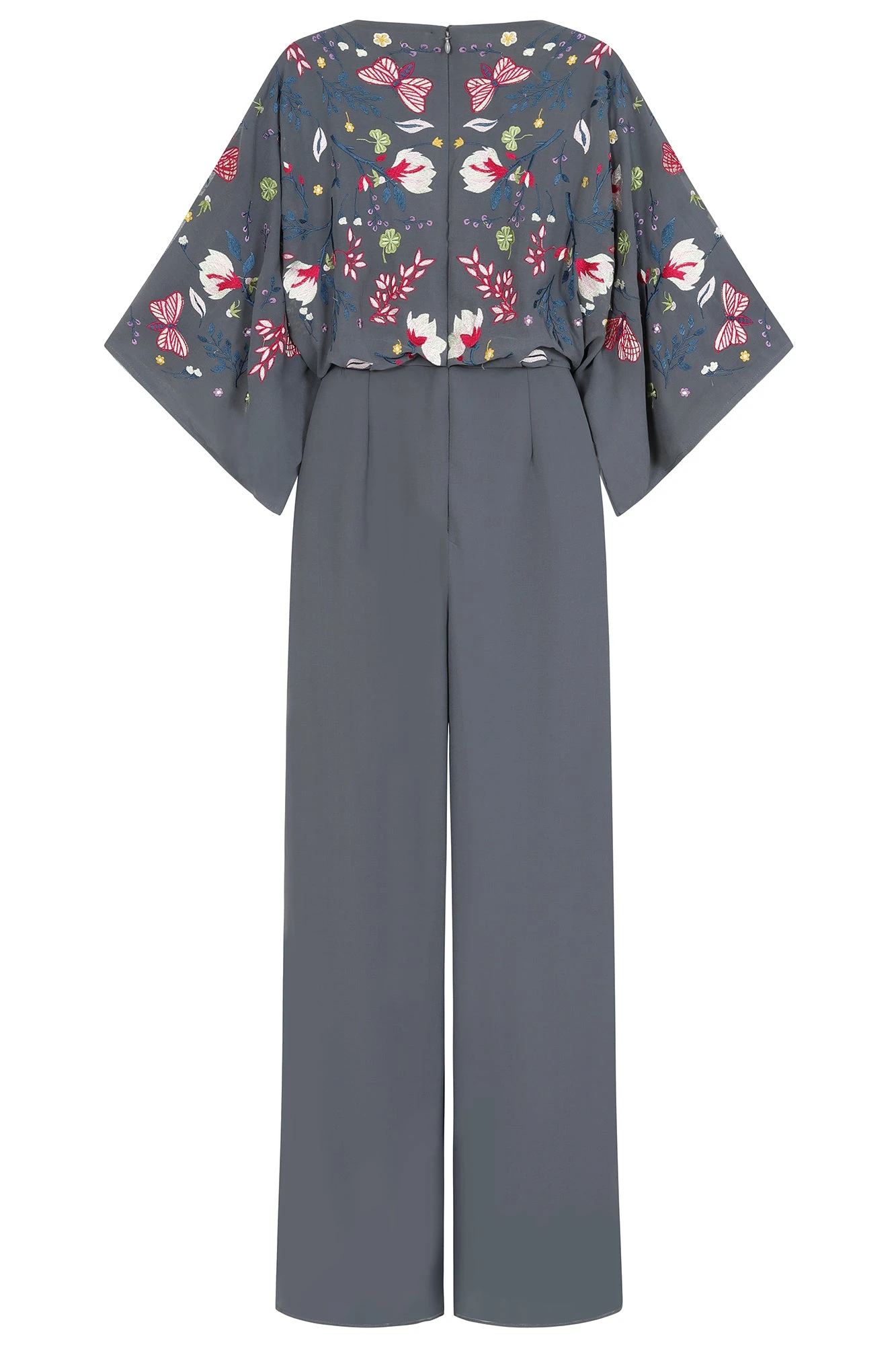 Yareli Charcoal Floral Embroidered Jumpsuit